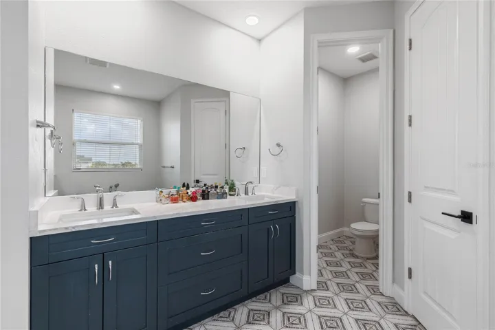 The primary suite offers a true spa-like retreat with dual vanities, a standalone soaking tub, and a separate glass-enclosed shower. Exterior upgrades include added stone accents that enhance curb appeal and reflect the pride of ownership evident throughout the home.