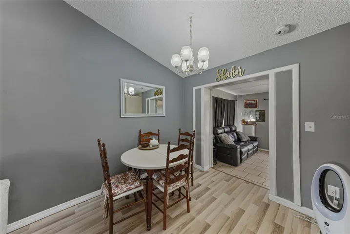 Set in a convenient and bustling New Port Richey location, this charming 2 bedroom, 1 bath, 1 car garage home presents an easy, comfortable layout along with valuable updates, including a 2023 roof and a fully privacy fenced backyard. Step inside to a space that immediately feels welcoming, where laminate flooring, vaulted ceilings, a handy storage closet, and open views to the dining area highlight the 13×13 living room and create a bright, functional gathering space. The galley-style kitchen flows easily from the living and dining areas and offers a full four-piece appliance package, with the added convenience of being located directly next to the laundry room and garage, making unloading groceries and everyday chores a breeze! The primary bedroom is thoughtfully split from the secondary bedroom for added privacy and features laminate flooring along with easy access to the full bathroom with a tub and shower combination. On the opposite side of the home, double doors lead into the second bedroom, currently used as a flexible second living space. Sliding glass doors open to the expansive backyard, creating a seamless connection to outdoor living. Outside, enjoy evenings on the back deck, gather around the fire pit, and take advantage of the storage shed, all within a fully fenced setting ideal for relaxation, pets, or playgrounds. This home offers a fantastic opportunity for first-time buyers or those looking to downsize while still enjoying outdoor space and a great location. Give us a call today to experience this charming New Port Richey home!