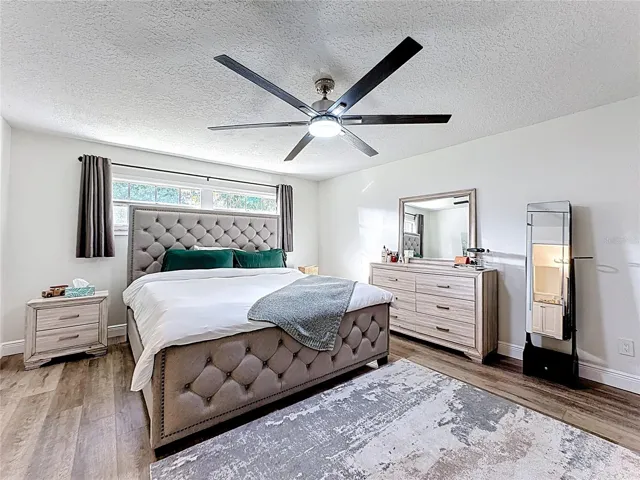 Beautifully updated single-story home featuring an open-concept layout, modern finishes, and timeless curb appeal. The spacious living area is highlighted by a striking stone fireplace, recessed lighting, and seamless flow into a bright, contemporary kitchen with an oversized island. The home offers a desirable split floor plan, with the private primary suite located on one side of the home and an additional en-suite bedroom positioned on the opposite side, ideal for guests, multigenerational living, or a private home office. Step outside to enjoy a private pool, creating the perfect setting for relaxation, entertaining, and Florida-style outdoor living. Additional highlights include an oversized garage for extra storage and a new roof replaced in 2023, offering peace of mind. Large windows fill the home with natural light, while mature trees and generous yard space enhance privacy and outdoor enjoyment. A perfect blend of comfort, style, and functionality.