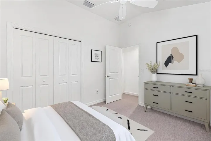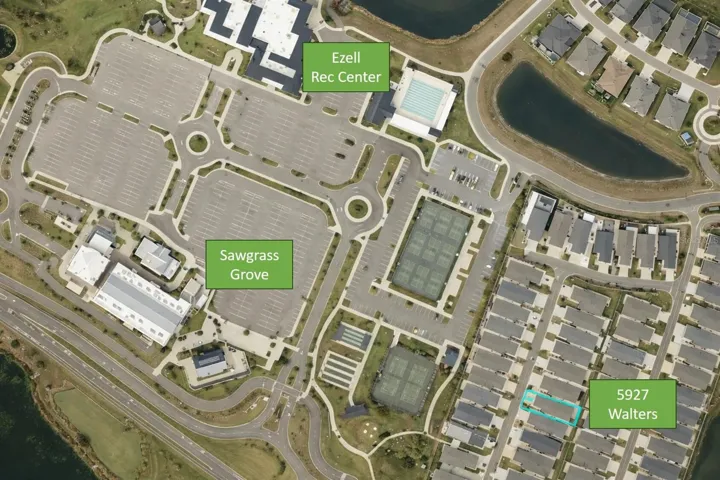 Location truly matters—and this home delivers. Just steps from the vibrant energy of Sawgrass Grove, this like-new 3BR/2BA Charlotte model has exceptional convenience in the highly desirable Village of St. Catherine. This courtyard villa is set on a private, fully fenced lot with attractive, low-maintenance rock landscaping. Inside, the home impresses immediately with its spotless condition and careful upkeep. The kitchen stands out with its generous pantry, large island with seating, and an inviting layout for both casual meals and entertaining guests. Durable tile flooring extends through the main living areas, kitchen, bathrooms, and laundry room, enhancing the home’s clean, modern feel. The primary suite provides a relaxing escape, featuring a spacious bedroom, dual-sink vanity, and an elegant Roman shower. Enjoy beautiful weather year-round from the screened-in lanai, an ideal spot for morning coffee or evening unwinding. Residents of St. Catherine enjoy an exceptional lifestyle with access to multiple pools, walking trails, nightly live music, dining options, a lively marketplace, championship golf, and putt-and-play. The nearby Ezell Recreation Center adds even more with a sports pool, fitness club, and a wide range of activities. And with golf-cart access to pools, courses, Sawgrass Market, entertainment, and more, everything you love is just minutes away.