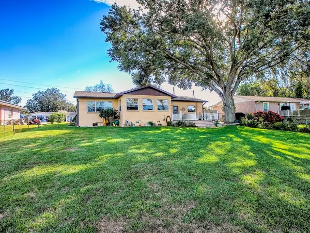 QUIET LAKEFRONT LIVING, surrounded by nature. MOVE IN READY! Perfect for first-time buyers, snowbirds, or anyone simply looking for quiet, warm, sunny Florida living. Lovely, classic Florida-style home with over 1,500 square feet on Lake Bracy, located in an intimate community with no HOA. Large yard with a fenced backyard.