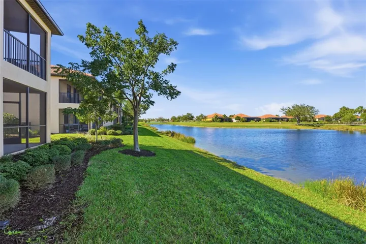 Now is your opportunity to live in this beautiful FIRST FLOOR condo located in the highly sought after guard gated community of Sarasota National. Located just across from the 4th hole of one of Venice’s premier golf courses, you will enjoy sweeping water and golf course views that will bring you hours of peace and enjoyment right from the comfort of your oversized screened lanai. Boasting a private side entrance, an expansive light filled open concept floor plan that features 3 bedrooms and 2 bathrooms, as well as a 2 car garage, this residence is more than just a condo, it is truly a home! From the moment you walk through the decorative lead glass front door, you will notice upgrades such as tile on the diagonal and decorative crown moldings that run throughout all of the main living areas. The kitchen features white shaker style cabinets, beautiful quartz countertops, and a stainless steel appliance package. Enjoy stunning views while you prepare a fantastic meal that is easily served buffet style on the oversized island… perfect for entertaining or everyday living. The entire space is filled with light thanks to large windows throughout and oversized sliders that are all designed with the highest rated HURRICANE IMPACT GLASS! The owner’s suite is huge on space with room to create a home office or extra sitting area. Large sliders lead out to the lanai, and a huge window will allow you to enjoy the stunning view right from the comfort of your bed. The carpet was removed and luxury vinyl plank flooring was installed in the owner’s suite, as well as the additional 2 bedrooms, making this house free of any carpet! 2 walk-in closets give you ample space, and the owner’s bathroom showcases dual vanities with tons of storage, an oversized walk-in shower with seamless glass enclosure, and a separate water closet. Across the condo you will find 2 additional bedrooms that are generous in size, and a large full bathroom that features a tub/shower combo. With a pocket door at the end of the hall, it is easy to create privacy from the main living areas of the home should you have guests in town. Just before stepping out to the 2 car garage you will find an in-unit laundry room. This building is completely maintenance free and includes all landscaping maintenance, pest control, cable tv, water, sewer, and trash pick up. Your monthly HOA fee also includes 2 GOLF MEMBERSHIPS that require no extra buy-in fee! This condo is perfect to use as a full time residence, a part-time seasonal home, or even a great investment… one that will generate substantial rental income! Live like you are on a 5-star vacation with a 30,000sf clubhouse with resort style pool, hot tub, outdoor tiki bar serving food and drinks daily, a coffee house, fine dining restaurant, 7,000sf fitness center with top-of-the-line equipment and classes, day spa, card room, bocce ball, pickle ball, tennis, dog park, playground, event lawn, and 18-hole championship golf course. Sarasota National is a guard gated 2400-acre International Audubon Bird Sanctuary that offers some of the most beautiful water and preserve views in all of Venice. This home is just minutes to the Atlanta Brave’s spring training camp at the CoolToday Park Stadium, as well as the new and exciting town center of Wellen Park. Explore 3 local beaches and historic downtown Venice, all less than 15 minutes from your front door!