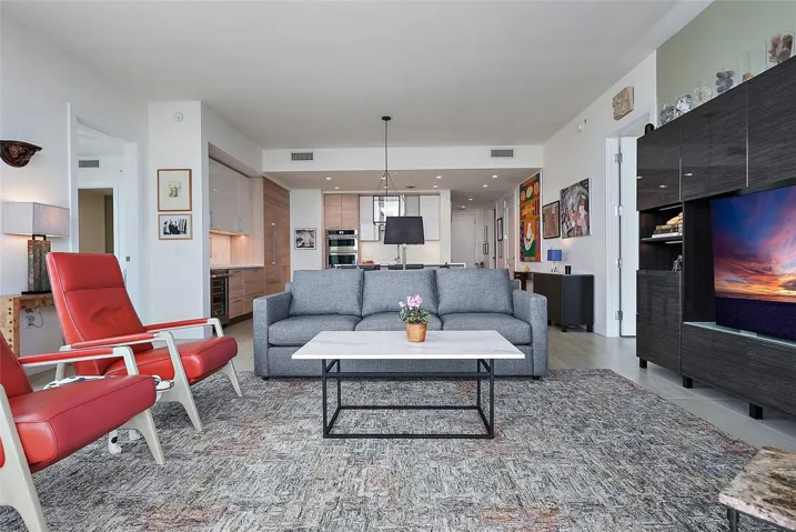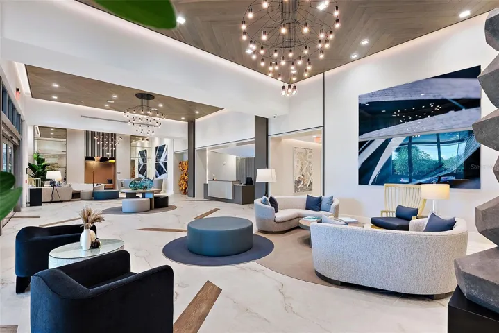 Luxurious condominium at 301 1ST ST S UNIT 2305, Saint Petersburg, FL 33701. This residence features two bedrooms plus a flexible studio/office or bedroom, two and a half baths, and 1,663 sq. ft. of elegantly designed living space. The interior boasts tile flooring, ten-foot ceilings, floor-to-ceiling windows, and custom cabinetry in walk-in closets. Modern amenities include programmable Hunter Douglas shades, a dedicated laundry room with Whirlpool appliances, and high-speed wired internet in every room, for secure remote work. Two reserved parking spaces, owner storage, and bike storage are included.