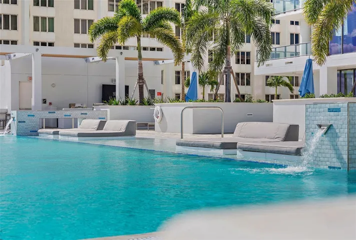 The pool deck and cabanas provide unobstructed views of Tampa Bay and front-row seats for the annual Grand Prix. The building is steps from the St. Pete Pier, live entertainment venues, the St. Petersburg Yacht Club, City Marina, and a variety of dining options contemporary gourmet to casual.