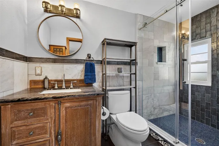 The 2017 chef’s kitchen renovation was completed with exceptional attention to detail, featuring custom period-style cabinetry, imported Italian hardware, designer tile, and a wet bar, all carefully selected to honor the home’s historic character while providing modern function. Both bathrooms were fully remodeled in 2017 with luxury finishes and high-end fixtures.