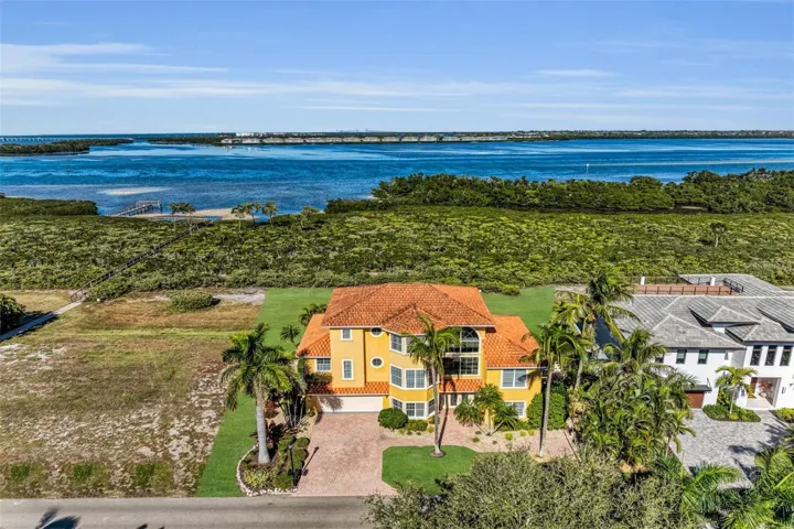 REFINED LIVING FOR A LIFE WELL LIVED Located within a private gated community, this exceptional residence offers a spectacular bay view coupled with direct easy access to a deep-water marina and a private dock Boaters will Love. Thoughtfully designed with high-end appointments throughout, the home combines refined finishes with comfortable, functional living across three levels, all accessible by a private elevator. The kitchen is a standout feature, designed to satisfy even the most discerning chef, with premium Wolf appliances, generous workspace, a full size wine cooler, over sized center island and a seamless flow to the main living and entertaining areas. Expansive windows capture stunning bay views that welcome the Sunrise every morning while multiple living spaces provide flexibility for everyday living and hosting guests. Outdoor living is equally impressive, featuring a veranda with seating for 12, a luxurious heated salt water pool and spa all set in a private, resort-style setting. Additional Features Include: A cozy fireplace the perfect place to snuggle up with that special someone, the safety of a whole house generator for unexpected circumstances, first floor spaces ideal for a gym to keep fit, a man cave so you never miss the Big game, or a craft area for the more creative partner of the home. Located just 1 mile (walking distance) from the pristine beaches of Anna Maria Island where you’ll find sun, surf and spectacular sunsets. This beautifully appointed home offers the security of gated living, the convenience of elevator access, and the rare combination of panoramic water views and deep-water boating—delivering an exceptional coastal lifestyle. Call for an appointment today and start enjoying a life well lived!