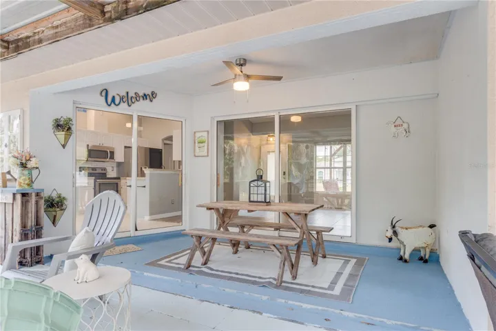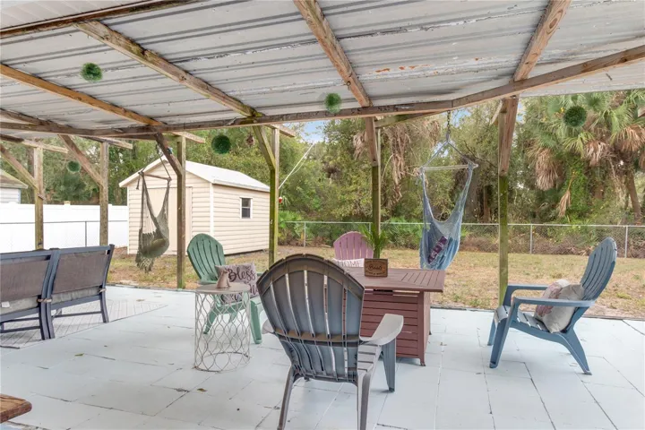 ** PLEASE TAKE A WALK THROUGH YOUR NEW HOME WITH THE 3D INTERACTIVE VIRTUAL TOUR ** Welcome to this move-in-ready 3-bedroom, 2-bathroom, 2-car garage home, tucked away on a quiet street in one of North Port’s most desirable neighborhoods. From the moment you arrive, curb appeal shines with tropical landscaping, fresh mulch, exterior lighting, and elegant entry pillars that warmly welcome you home. Relax on the charming front pergola with hanging swings, the perfect spot to enjoy a good book or soak in the Florida sunshine. Built for comfort and peace of mind, this home features a new roof (2022), A/C (2021), hurricane shutters, and a water heater installed in 2019. Step inside to a bright, open floor plan with soaring vaulted ceilings, neutral tones, and ceramic tile throughout the entire home, making it both low maintenance and pet friendly. Abundant natural light pours in through the front windows and triple sliding glass doors in the great room. A unique wood accent wall adds character and warmth to the main living space, a truly standout feature. The kitchen is well appointed with laminate countertops, subway tile backsplash, plant shelves, recessed lighting, a closet pantry, breakfast bar, and an abundance of cabinet space. Bonus, all stainless steel appliances are included. The dining area features a large window with custom sliding barn door blinds and a modern light fixture, creating an inviting space for everyday meals or entertaining. The desirable split-bedroom layout offers privacy for owners and guests alike. Guest bedrooms are generously sized with ceiling fans, ample closet space, and natural light. The guest bathroom includes a tub and shower combination, modern vanity, and upgraded lighting. The primary suite is a relaxing retreat with a walk-in closet and an en-suite bathroom featuring a single vanity with epoxy countertop, linen closet, and walk-in shower with a built-in bench. An updated indoor laundry room located off the kitchen provides additional storage and functionality, all within the comfort of your air-conditioned living space. Step outside through double sliding glass doors to your private backyard oasis. The covered lanai is ideal for outdoor dining and grilling year round. A farmhouse-style patio with paver flooring, metal roof, and wood beams offers the ultimate place to unwind. Gather around the firepit, relax in the Adirondack chairs, or enjoy the hanging swings while taking in Florida’s beautiful weather. The fully fenced backyard includes a utility shed with electric hookup potential and plenty of space for kids or furry friends. Surrounded by mature oaks, sunshine, and the sounds of nature, this serene setting feels like a true retreat. With no HOA, no deed restrictions, and no flood zone designation, this property offers exceptional flexibility. Conveniently located near schools, dining, Coco Plum Shopping Center, and the vibrant Wellen Park area, home to the Atlanta Braves Spring Training stadium, dining, fishing pier, and weekly Sunday farmers market. Easy access to I-75 and US-41 puts you just a short drive from some of Florida’s most beautiful beaches. Whether you are searching for a full-time residence or a seasonal escape, this beautifully maintained home offers comfort, style, and functionality in a prime location. Schedule your private showing today and start your next chapter here.