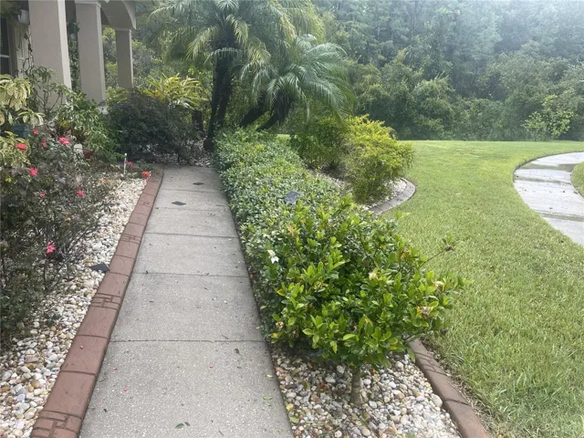 * Landscaping with many extra Palms around and flower beds with River Rocks.