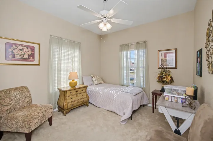 Welcome to your new home in the sought-after gated community of Heritage Oak Park! Surrounded by native oak trees and winding streets, this neighborhood offers a peaceful, country-like atmosphere while being just minutes from shopping, dining, medical facilities, and beautiful Gulf beaches. The location is ideal, with a short walk to community amenities. This well-maintained villa comes turnkey furnished with tasteful décor and features an open floor plan with 1,190 sq. ft. under air, 2 bedrooms, a den/bonus room, 2 full baths, a spacious 2-car garage, and a welcoming screened front porch perfect for enjoying your morning coffee. Upgrades include laminate flooring in the great room, den, bonus room, and kitchen, plus tile in wet areas and the front porch. The great room flows into the kitchen, making it ideal for entertaining. The kitchen boasts granite countertops, an under-mount sink, tile backsplash, new cabinet doors with glass inserts and crown molding, a pantry closet, pendant lighting, and newer stainless steel appliances. The primary bedroom includes an ensuite bath with dual sinks, a bay of drawers, a walk-in shower, and a large walk-in closet. The second bedroom and bath are located on the opposite side of the villa, offering privacy, with a large linen closet nearby. The second bath features a tub/shower combo and granite-topped vanity. The bonus room, currently used as a dining area, could serve as a den or third bedroom. Laundry is in the garage with a full-size washer and dryer. Other features include ceiling fans, window treatments throughout, glass insert in front door for light, newer A/C and water heater (2020), and pull-down attic stairs with garage flooring. The exterior was recently painted, and the roof was replaced in 2016. Move-in ready! This pet-friendly community allows golf carts and offers an active lifestyle with a full-time activity’s director and amenities such as a large clubhouse, heated pool, tennis courts, pickleball, bocce ball, and shuffleboard.