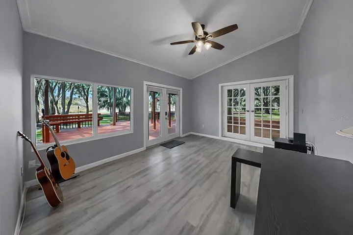 The updated Florida room leads outside to the massive freshly stained back deck, perfect for hosting family and friends, outdoor dining, or simply enjoying the natural surroundings and tranquil setting.