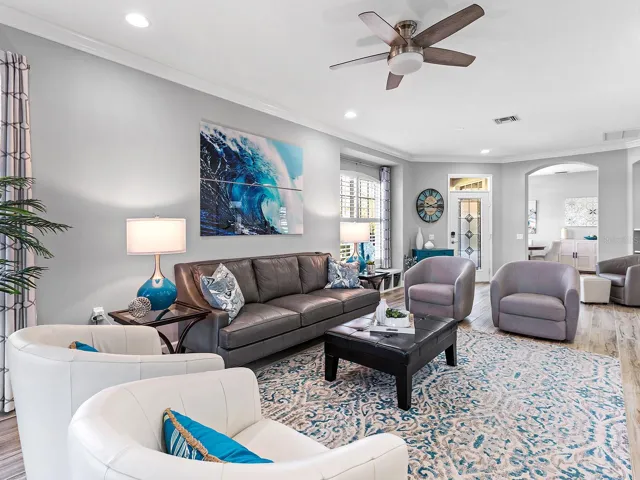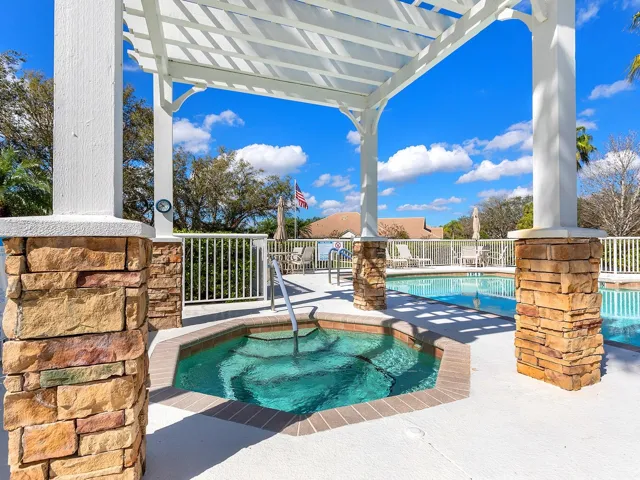 BRAND NEW 2025 ROOF, AND 2025 IMPACT WINDOWS AND SLIDING GLASS DOORS! Savor the best life has to offer at Lakewood Ranch Country Club from this charming villa offering a premier lot with both lake and golf course views, plus a highly desirable private pool! Overlooking the 17th hole of the Legacy Course designed by Arnold Palmer, this villa has SOUTHERN views of the unique island where golfers will play over the lake. The exterior and interior of this unit have been COMPLETELY renovated throughout 2025-2022 so you will have peace of mind knowing all you need to do is move right in! The modern interior is brought together by high ceilings with crown molding, plantation shutters, window treatments, neutral color palette, and wood-look porcelain plank tile flooring. Your functional front entry invites guests past a mature oak and 2025 lush landscaping through the glass front door; and includes a built-in storage bench inside at the large window, plus an art display niche with accent lighting and quartz shelves. The central great room has an open floor plan with custom wood feature wall, in-ceiling speakers and NEW 2025 IMPACT sliding glass doors to the lanai. Your outdoor oasis offers the ideal location to relax while taking in breathtaking views surrounded by tropical landscaping. The screen lanai features amazing 2023 upgrades with a panoramic screen enclosure, travertine pavers, tongue and groove wood ceiling and in-ceiling speakers. The saltwater pool with water feature, stone surround can also function as a spa with 8 water jets and has a 2025 pump. The private study with double glass French doors and shiplap feature wall offers a private place to work or can be flexible as an additional guest accommodation. Your elegant dining space is surrounded by bright windows with plantation shutters and 2023 designer chandelier. The chef’s kitchen features a plethora of upgrades with a 2023 complete renovation of the entire space. This spacious kitchen is larger than most you’ll find in villas and showcases beautiful quartz counters, peninsula with counter-height seating for guests, designer pendant lights, marble herringbone backsplash, added cabinetry with pots and pans drawers, 2022 stainless steel appliance suite, reverse osmosis system at the sink, and a custom designed integrated pantry tower with rolling shelves and wine refrigerator. The primary suite has relaxing lake and golf course views plus tray ceiling with crown molding, shiplap feature wall, and walk-in closet with custom shelving. The spa-like bathroom was completely renovated in 2023 with new long vanity and counters, porcelain tile feature wall, and walk-in shower with rain shower head and pebble floor. The guest bedroom and bath offer the same luxurious upgrades with a 2023 renovated bathroom and inviting bedroom. This villa offers the ultimate in easy living with grounds maintenance included in your HOA dues, an exclusive Weston Villas community pool, 2025 NEW ROOF, 2025 IMPACT WINDOWS AND SLIDING GLASS DOORS, 2025 gas water heater, 2022 whole-house water filtration system, and 2022 AC system. Appreciate a state-of-the-art fitness center, clubhouses, junior Olympic-sized pool, four 18-hole championship golf courses, tennis and pickleball and more by becoming a member of the Lakewood Ranch Country Club. Lakewood Ranch is the top multi-generational community in the country for 8 years in a row with award-winning shopping, dining, A-rated schools, parks, and nearby beaches.