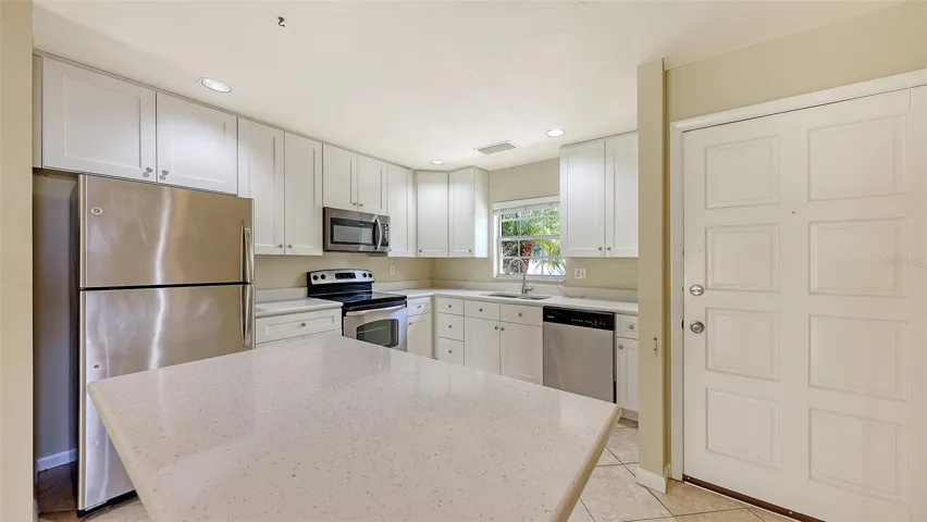 Welcome to The Village. A quaint enclave of just 18 villas surrounded by mature landscaping, yet just minutes from downtown Sarasota. This 2-bedroom, 2-bath villa offers an excellent opportunity for an investor, first-time homebuyer, or winter retreat. The open great room design features tile flooring throughout, creating a bright and inviting living space. Both bedrooms include walk-in closets and en-suite bathrooms, providing comfort and privacy. The updated kitchen boasts quartz countertops and a separate island for additional workspace—perfect for cooking and entertaining. Step outside to the covered patio, where you can enjoy garden views with a partial pond backdrop. Additional highlights include a new roof in 2025 and one assigned parking space. Ideally located just minutes from Downtown Sarasota/Main Street, St. Armand’s Circle, and Lido Key, you’ll have easy access to world-class dining, shopping, cultural attractions, and beautiful beaches. Whether you’re looking for a full-time residence, vacation getaway, or rental property, this delightful home offers the perfect blend of location, lifestyle, and value.