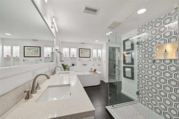 Resort-inspired living on Forked Creek with a pool, multiple outdoor entertaining areas, and dock with lift for direct bridge-free access to Lemon Bay and the Gulf. From the moment you arrive at this three bedroom + office, two bathroom home, the pride of ownership and attention to detail are immediately apparent. Set on an oversized lot, the property is beautifully landscaped with an array of gardens and raised beds, creating a peaceful connection to nature and space to continue cultivating your own outdoor oasis. A paver driveway, tile roof, and a charming pergola-style carport with flowering vines enhance the inviting curb appeal. Inside, a welcoming foyer offers a comfortable seating area and sets the tone for the thoughtfully designed interior. The home has soft, neutral tones, complemented by plantation shutters and tile flooring throughout for both beauty and easy maintenance. The kitchen is both functional and elegant, featuring rich wood cabinetry with crown molding, granite countertops, a tile backsplash, a raised breakfast bar, and stainless steel appliances. Just off the kitchen, the formal dining room is framed by sliding glass doors that open to unending views of the pool, paver fireplace, and the water beyond, creating a beautiful setting for everyday meals or special gatherings. A versatile office space offers a reach-in closet, a laundry closet, a utility closet, and an exterior access door, providing excellent flexibility. This room could easily serve as a fitness room, hobby space, or remain a convenient home office, adapting effortlessly to your lifestyle needs.The primary ensuite bedroom is spacious and inviting, featuring a walk-in closet and a beautifully designed bathroom in a classic black and white palette. The bathroom includes a walk-in shower with European-style frameless glass doors and a lighted niche, a jetted soaking tub with accent lighting, and a dual vanity. Both guest bedrooms are nicely sized, with one offering a walk-in closet. The guest bathroom is equally well finished, with a fully tiled design, tile extending halfway up the walls, and a frameless glass walk-in shower, providing a polished and comfortable space for guests. The outdoor living space is truly spectacular, featuring a tiled, screened lanai with a pool and plenty of room for lounging and dining. Just beyond the screened area, a spacious custom paver patio offers multiple entertaining zones, including a firepit, cooking area, and a pergola perfectly positioned to overlook the water. Winding walking paths lead you through the property, some accented with flagstone pavers and decorative stone and others finished with classic pavers, guiding you to the newer dock with boat lift. From here, set out on daily adventures with no bridges to slow you down, heading south toward Stump Pass and Boca Grande or north toward Venice and Sarasota. Along the way, enjoy waterfront restaurants, tiki bars, sandbars, abundant wildlife, or cast a line for your favorite saltwater catch. This exceptional home at 1393 Forked Creek Drive truly offers it all and is ideally located between Venice and Englewood, placing local dining, shopping, and entertainment just minutes away.