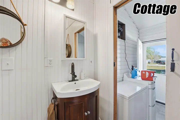 The main home features updated flooring, upgraded lighting with dimmer switches, lever-style hardware throughout, upgraded sinks, faucets, toilets, and shower heads with handheld wands. The kitchen includes double ovens with ceramic cooktop, refrigerator with ice and water, dishwasher, 2-tier pull-out cabinet shelving, and ample storage. Washer and dryer hookups are located inside the home and in the cottage laundry room (washer and dryer not included).