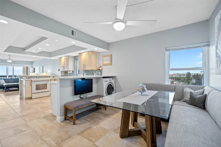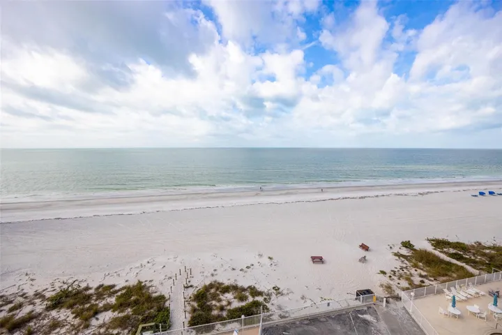 TOES IN THE SAND – END/CORNER UNIT OFFERING BEACHFRONT LIVING WITH PANORAMIC GULF VIEWS IN COVETED INDIAN SHORES, FL | Welcome to paradise and wake up to sunrises over the water in this fully furnished beachfront condo where coastal luxury meets turnkey convenience. With so many restaurants, ice cream parlors, and family-fun activities just outside your doorstep, this location is unmatched for hanging up your car keys and hopping on a bike or just strolling down the dedicated walk/bike alongside this stretch of the beach. Modern conveniences such as hurricane-rated floor-to-ceiling glass sliders frame unobstructed Gulf views, while your large private balcony becomes your front-row seat to spectacular sunsets, wildlife of the ocean, and the soothing rhythm of the waves lapping up on the shore. This fully updated and renovated condo (down to the studs) with all new infrastructure is ready for you to step through the door and begin enjoying immediately. Upgrades completed include new drywall, paint, hvac system including ducts, re-designed kitchen, hurricane-rated windows, and doors. Enjoy complete hurricane protection with an additional set of motorized hurricane shutters on the balcony.