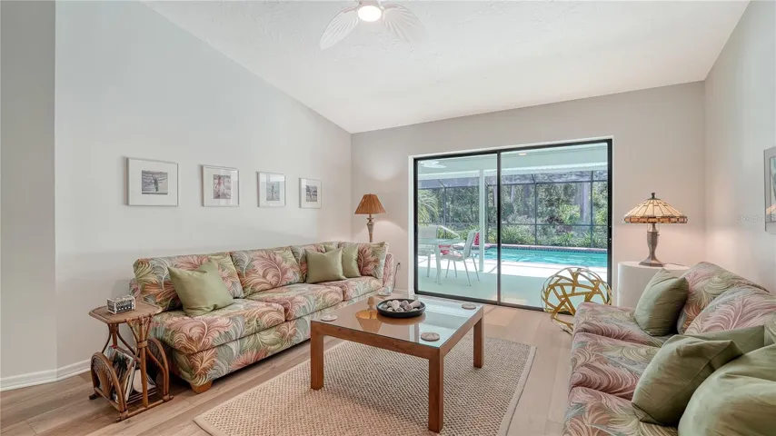 Discover this beautifully maintained three bedroom two and one half bath pool home, thoughtfully updated to provide comfort, efficiency, and contemporary style in a natural setting. The large kitchen has been updated with a new stove, refrigerator, dishwasher, disposal, and reverse osmosis drinking water equipment. Stylish luxury vinyl plank flooring has been installed in the living room, all three bedrooms, the great room, and kitchen. New ceiling fans have also been installed throughout the interior and lanai. The pool features a new pool sweep, and the entire pool cage frame has been freshly painted along with new screening installed in 2020. Fresh paint inside and out enhances every space with a clean, light, and bright look with abundant natural light provided by skylights throughout. The updates were more than just skin deep; A whole house water conditioner ensures pristine water quality, 2 separate water heaters and 2 HVAC systems provide peace of mind and redundancy. Recent enhancements include a reinforced roof structure with the addition of “third nail” and enhanced roof straps providing peace of mind and lowered insurance costs. Other improvements include a new washing machine, water heater (2021) and a new well pump for irrigation. The professionally designed and well maintained landscaping is amazing to behold and offers outstanding curb appeal in both the front and back yards. For those who love outdoor living, this home offers a sublime natural experience featuring a meticulously maintained butterfly garden including an elegant pergola just outside the family room’s sliding doors providing a serene and tranquil setting rarely found in even the most rural settings allowing you to watch the birds, butterflies and even the occasional deer cavort from the comfort of your family room. This property combines thoughtful upgrades, and inviting living spaces both inside and out—ready for you to move in and enjoy. Property being sold as-is. Schedule your tour today to experience this exceptional opportunity firsthand!