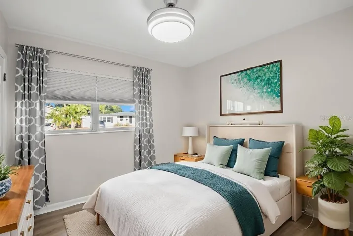 Nestled on a quiet curved street in the desirable Westgate Manor neighborhood, this beautifully updated 3-bedroom, 1-bath single-family home offers comfort, style, and peace of mind. Situated on a large, private corner lot in a non-flood and non-evacuation zone, this solid block, single-story residence has been extensively renovated with high-quality upgrades throughout. Major system updates include a new roof (2021), AC system (2017, updated in 2022), and new water heater (2022). A full interior and exterior renovation completed in 2024 delivers modern finishes and move-in-ready convenience. The stunning remodeled kitchen features new granite countertops, cabinetry, tile backsplash, updated lighting, and new stove. Additional 2024 upgrades include luxury vinyl plank flooring throughout, fresh interior paint (including ceilings), fresh exterior paint, modern light fixtures and ceiling fans, new blinds, new gutters, refreshed front and rear landscaping, smart locks, a Nest thermostat, and a Ring floodlight camera for enhanced security and exterior lighting. The bright, functional layout offers a spacious living area, an updated galley-style kitchen with eat-in dining space, and three comfortable bedrooms. The attached extra-deep carport provides covered parking and access to a large storage/ laundry/ workshop room with fresh paint, two new metal doors, and a new full-size washer and dryer. The fully fenced backyard is perfect for relaxing or entertaining and includes three raised garden beds, ideal for flowers, herbs, or vegetables. With approximately 1,425 total square feet under roof, this move-in-ready home is ideally located just minutes from downtown St. Petersburg, Gulf beaches, shopping, dining, parks, and major roadways, with Westgate Elementary only blocks away. This meticulously updated home offers exceptional value, comfort, and convenience — schedule your private showing today.