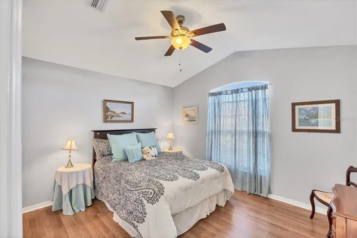 Enjoy effortless, maintenance-free living in this beautifully maintained, light-and-bright home in the desirable Fairway Commons section of Bobcat Trail. Sold turnkey furnished, all you need is your suitcase to move right in and start living the Florida lifestyle. The open-concept design with vaulted ceilings, tile flooring throughout the main living areas, and upgraded LVP in the primary and guest bedrooms creates a stylish yet comfortable atmosphere. 3rd bedroom does not have a closet, but it would be easy to add one. (County reflects this as a 2 bedroom). Zero-corner sliders seamlessly connect the indoors to the outdoors, leading to your private heated pool—perfect for relaxing or entertaining. The spacious primary suite features two walk-in closets and direct access to the pool, enhancing the sense of indoor-outdoor living. This home is packed with recent upgrades, including a new roof (2023), new A/C and dishwasher (2022), gas pool heater (2022), new pool cage (2024), fresh interior and exterior paint (2024), and a new refrigerator (2026). The stove, dryer, and pool heater are all gas, and the property sits in a highly desirable “X” flood zone for added peace of mind. Located behind the exclusive gates of Bobcat Trail, residents enjoy access to resort-style amenities such as pickleball and tennis courts, a community pool, fitness center, and a lively activity center with events and social gatherings. With easy access to I-75 and US-41, you’re just minutes from dining, shopping, medical facilities, and everything you need—making this truly a move-in-ready, lock-and-leave home designed for carefree Florida living.