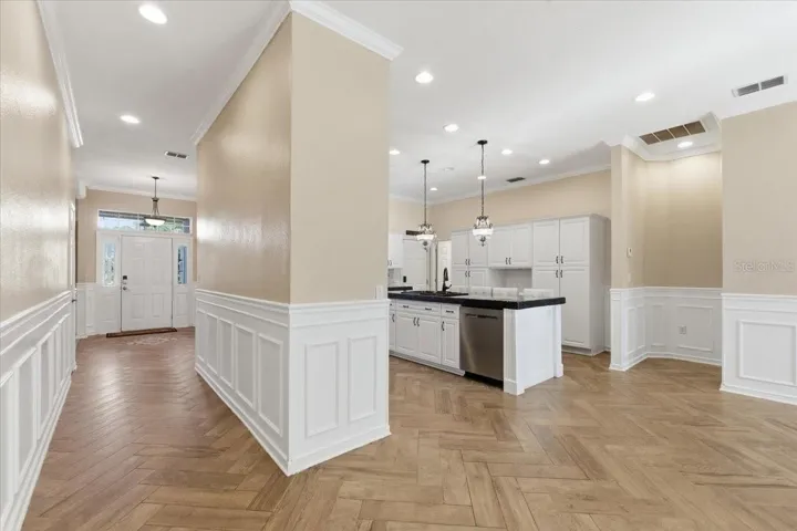 Elegant and Practical Living Awaits You! Welcome to this stunning home that beautifully combines elegance with everyday functionality. Step inside to discover soaring high ceilings with fans and recessed lighting, creating a bright and inviting atmosphere. Title floors throughout and meticulous crown molding, widow cornices and wains coating adds the tough of sophistication. Separate dining room and versatile flex space can serve as an office or sitting area. The large eat-in kitchen offers plenty of storge, and sleek concrete countertops. New dishwasher, garbage disposal and microwave. In the living room you have a corner fireplace and French doors to a large patio. Split floor plan offers privacy and comfort. The owner suite is very large with tray ceiling the bath offers a garden tub for relaxing.