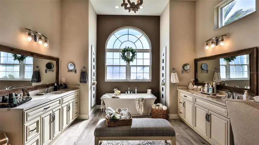 Welcome to 1 Rockwell Lane, Palm Coast, FL, a magnificent custom-built home completed in 2022, ideally situated on an oversized corner lot. A stunning circular paver driveway, concrete block and stucco construction, and a beautiful tiled roof create exceptional curb appeal and set the tone for the quality found throughout. Step through elegant French doors into a bright, open interior featuring arched windows, soaring 12-foot ceilings, tray ceilings, and tile flooring throughout. Thoughtful architectural details, including barn doors and crown molding, add warmth while maintaining a modern, upscale feel. The living room makes an immediate impression with a striking shiplap accent wall that serves as a welcoming focal point. The chef’s kitchen is truly the heart of the home, offering quartz countertops, a massive island with farmhouse sink, induction cooktop, built-in microwave, updated appliances, custom cabinetry with crown molding, a spacious walk-in pantry, and a charming bay window overlooking the pool. Designed for comfort and function, the home features three bedrooms, three full baths, walk in closets, a convenient wet bar, and a separate laundry room with sink and quartz countertops. The primary suite is a private retreat with double barn doors, generous space, and a spa-like en-suite bath featuring a double vanity, soaking tub, large walk-in closet with custom built-in shelving, and a nearby flex room perfect for a home office. Enjoy Florida living at its finest in the private backyard oasis with a heated saltwater pool and waterfall, covered screened lanai, and fully equipped outdoor kitchen. Additional highlights include a fire pit under a gazebo, outdoor shed with tiled roof, wht vinyl privacy fencing, two-car garage, and 2,859 square feet of heated living space. A rare opportunity to own a nearly new luxury home in Palm Coast.
