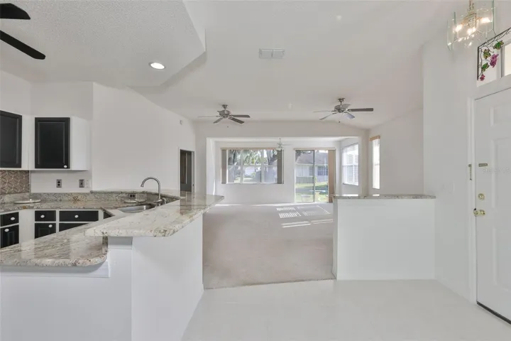 This freshly painted home presents 1,444 square feet, with the lanai enclosed and seamlessly incorporated into the living area, expanding the space to approximately 1,471 square feet and enhancing the already spacious family room with an additional 27 square feet of comfortable living space.