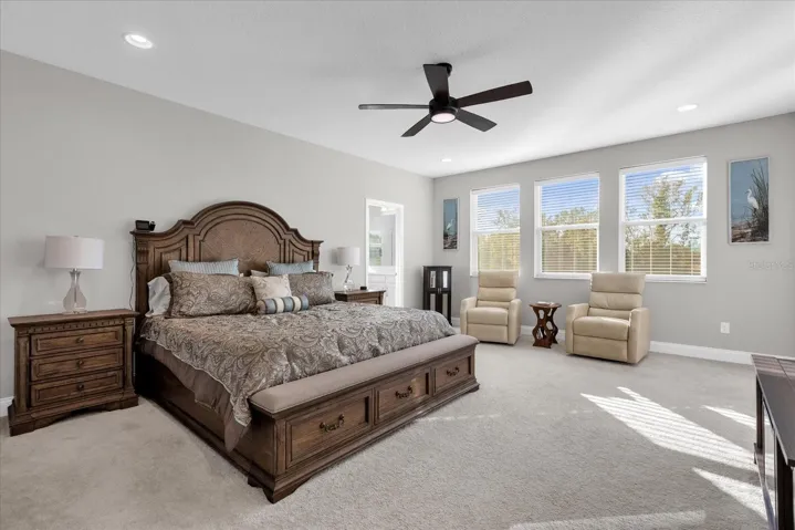Don’t wait for new construction—this turnkey 2022-built home offers the look and feel of a brand-new build with extensive upgrades already completed. Located in the highly sought-after Rivington community, this two-story home features 3,689 sq ft of living space with 5 bedrooms, 4 full bathrooms, and a three-car tandem garage with added storage. The home welcomes you with a landscaped front yard, oversized stone driveway, and a charming front porch perfect for enjoying morning sunrises. Inside, a grand two-story foyer leads into a thoughtfully designed open floor plan featuring light gray wood-look tile flooring throughout the main living areas, large windows, and spacious rooms ideal for both everyday living and entertaining. The chef’s kitchen is a true centerpiece, offering quartz countertops, stainless steel appliances, a large island, a butler’s pantry, and an oversized walk-in pantry. The kitchen and living areas overlook a tranquil pond, creating a bright and inviting atmosphere with stunning sunset views. A guest bedroom and full bathroom on the main level provide a private and convenient space for visitors. Upstairs, the expansive primary suite features double-door entry, a spa-like bathroom with dual vanities and a large walk-in shower, and an oversized custom California walk-in closet. The suite also offers access to a private screened upper porch overlooking the pond. Three additional bedrooms complete the upper level, including one bedroom with a Murphy bed and en-suite bathroom, ideal for guests or multigenerational living. An oversized bonus room and a convenient second-floor laundry room provide added functionality and flexibility. Enjoy Florida living from the screened-in lower porch and fully fenced backyard with no rear neighbors, offering privacy and peaceful pond views. A full security system with cameras conveys. Ideally located in the growing city of DeBary with downtown development underway, this home is a must-see. Schedule your private showing today!