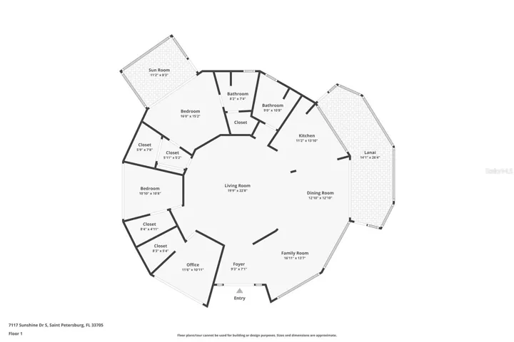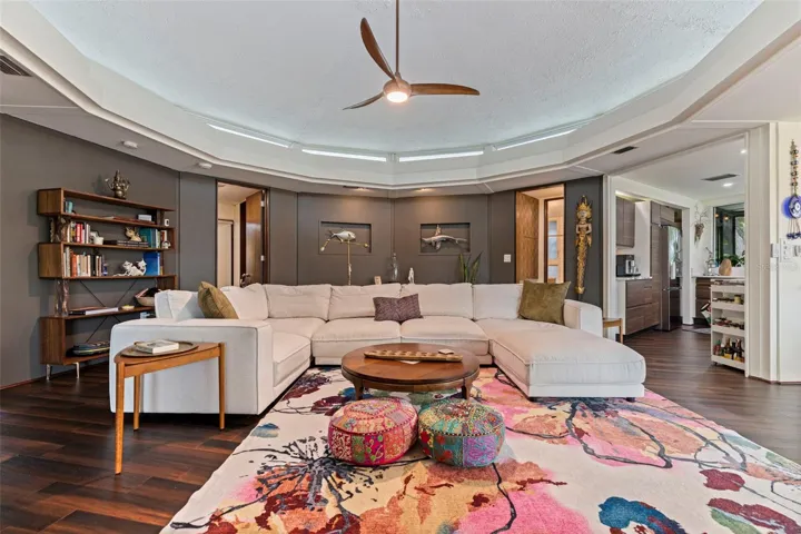 When one thinks of iconic modern architecture in the Sunshine City, one name stands head and shoulders above all others. Harvard Jolly. The firm is known for amazing and unique modern architecture including the inverted pyramid St. Petersburg Pier, Pasadena Community Church, and the Williams Park Band Shell and Pavilion which was a recipient of the Award of Merit from the American Institute of Architects. Other recognizable local works are The Tides Hotel, Derby Lane, Central Library on 9th Avenue N, and Hospitality House at Busch Gardens. Most of the world-renowned architectural firm’s designs are commercial and institutional masterpieces. There are but a few Harvard Jolly residential designs in and around St Petersburg. The Willingham House, located in St Pete’s “Pink Streets”, is one of these rare inhabitable works of art. The very unique dodecagon (12 sided) house that Al Willingham had designed and constructed for his wife, Eleanor, has quite a story attached to it. Rumor has it that Mrs. Willingham was quite eclectic and demanded something that the Sunshine City had never seen before. Bored with the many single-story, rectangular, masonry, Ranch-style homes with small windows and confined rooms that seemed to be taking over the city in 1970, she challenged her husband to create something super-special for her. She wanted her home in the Sunshine State, in the Sunshine City, and to be constructed on Sunshine Drive S. and to be full of character, space, and of course – sunshine! So in August of 1970, Al Willingham accepted his wife’s challenge and began his journey. Mr. Willingham was not just a normal husband, he was an architect, and he just so happened to work for the architectural firm that was in the early conceptual stages of designing one of the most iconic pier structures in the entire world. Maybe his wife knew something of the secret St Petersburg Pier design, or maybe it is just that her timing was impeccable, as the creative juices were surely flowing at Harvard Jolly in the early 70’s. Whatever the case, a true work of unique and modern art sits at 7117 Sunshine Drive S. This is a once in a lifetime opportunity to experience what Eleanor Willingham experienced when she first walked into her amazing custom residential masterpiece – a voluminous and bright home unlike anything else in the Sunshine City. Recent improvements include: roof 2021, service panel 2021, tankless water heater 2023, HVAC with UV 2024, electrical and plumbing upgrades 2024, large climate-controlled garage/workshop installed 2024, plus many more upgrades and improvements over the past few years.