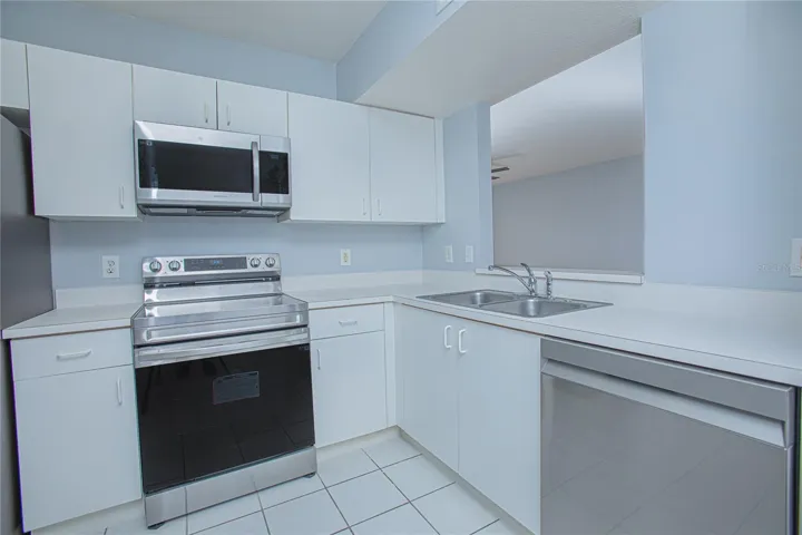 Welcome to this beautifully updated 3-bedroom, 2-bath Traditional Garden-Style Condo in the desirable Villa Del Sol at Meadow Woods, Interior Features with spacious 1,200 sq ft open floor plan with family-friendly layout and abundant natural light. Newer kitchen appliances including refrigerator, range, dishwasher and microwave — perfect for everyday cooking and entertaining. New washer and dryer in-unit laundry for convenience and efficiency. Comfortable living room flows to a large, screened porch with water/pond views, ideal for morning coffee or evening relaxation. Ceramic tile and quality flooring throughout main living areas; bedrooms have quiet space and ample closet storage. Neutral paint and updated fixtures provide move-in readiness. A gated community offering resort-style living just minutes from major highways, Orlando International Airport, shopping and dining.