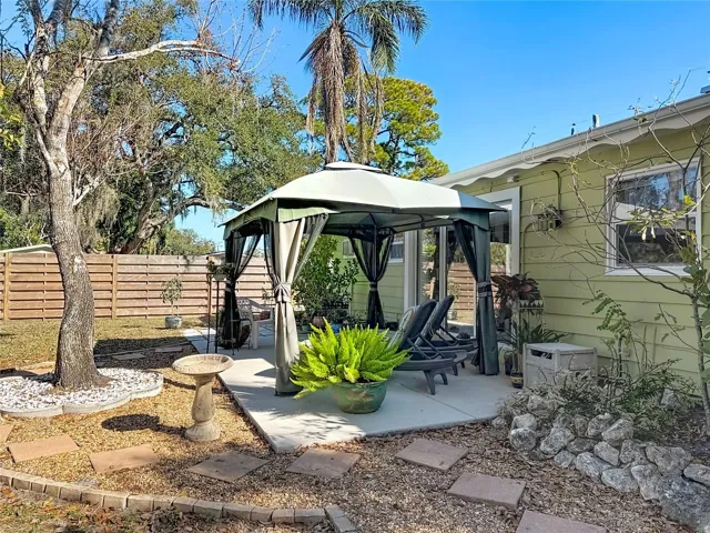 Welcome to this charming home. TERRAZZO floors! This lovely example of florida lifestyle is a treasure. A huge yard on a corner lot. Close to Arlington Park and the great pool they have AND also within a short distance is the YMCA. Do you love downtown? This location is so near yet it is a QUIET alternative. The 2 bedroom and 1.5 bath home has so many original features, it retains that 50’s mid century vibe. WOW the kitchen will stun you with the well cared for condition. Butter yellow cabinets and tile countertops in white, give off that cozy lets cook from scatch and eat in feeling. The inviting open concept living room and dinning room combination looks out into the spacious yard. the yard is an extention of the living area. A gazebo sits on the patio begging you to relax with a coffee in the morning. The corner lot is fully fenced and has some treasured trees and shrubs. Any gardener will love puttering with this space. From the yard a door to the laundry gets you back inside, washer/dryer, two large laundry tubs and a utility area make this a room for hobbies. The carport also offers an entrance to this space. With all that, Sarasota has so much to keep you out and about! BEACHES, the new MOTE sea aquarium at UTC, fishing, kyaking, golfing, boating, amazing dinning and our theater scene, Selby botanical gardens, the Ringling museum, St Armands circle and more. Making Sarasota home is a dream come true. Please call for an appointment to see this delightful property.