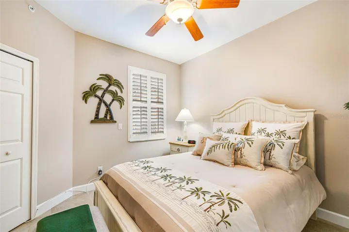This bright and sunny first-floor condominium, with an attached two-car garage has been meticulously maintained, stylishly updated, newly painted, tastefully furnished, and is truly move-in ready, offering all the benefits of a single-family home with the convenience of condo living. Featuring over 1,700 square feet under air, this desirable split floorplan includes 3 bedrooms, 2 bathrooms, and a wide-open living space with oversized tile throughout, sliding glass doors across the back, and plantation shutters in every room. The updated kitchen is ideal for the inspired home chef with granite countertops, raised-panel cabinetry with crown molding, under-cabinet lighting, a breakfast bar, large pantry, and newer appliances. Coastal furnishings create a tranquil, turnkey ambiance, with living room, primary bedroom, and guest bedroom furniture included. The spacious primary suite boasts a tray ceiling, lagoon views, sliders to the lanai, a large walk-in closet, and an ensuite bath with Roman shower, dual sinks, and framed mirrors. Enjoy peaceful outdoor living on the inviting wrap-around tiled lanai overlooking a wooded area, garden views, and a picturesque lagoon, shaded for cooler summer days and quieter year-round. Additional highlights include motorized hurricane shutters on every window, electric storm shutter on the lanai, extra storage in the laundry room and garage, newer ceiling fans, lighting, and hardware, an A/C replaced in 2023, a washer and dryer added in November 2025, and a water heater from 2018. A charming pathway winds behind the residence to the lagoon and pool, where neighbors socialize poolside on Wednesday evenings. Residents enjoy access to their two community pools, and the additional gated entrance to Prosperity Point. Burnt Store Marina boasts on-site restaurants, golf and activity club, racquet and fitness center, and a welcoming community. Located just steps from the marina which is one of the largest full-service deep-water marina in Southwest Florida, with immediate access to Charlotte Harbor and only 10 miles to Tarpon fishing and the Gulf of America. This his well-maintained condo is an ideal home base for boating and fishing enthusiasts, winter residents, or full-time living away from the crowds.