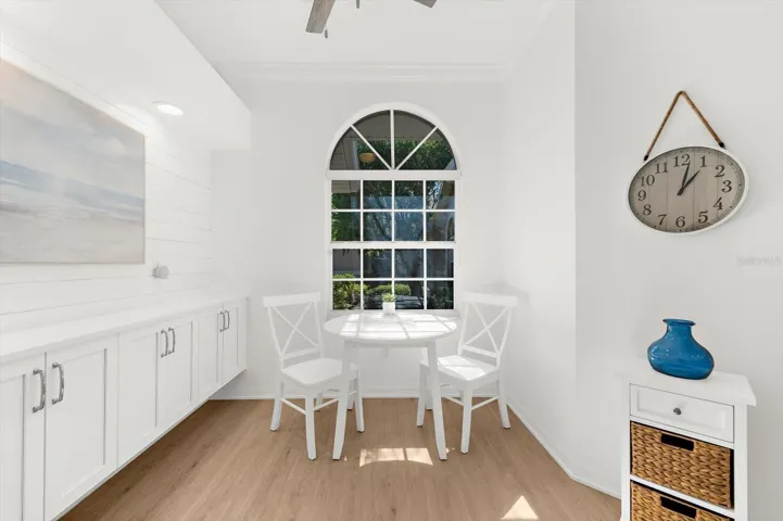 Every detail has been carefully considered, including neutral finishes, fresh interior paint, updated lighting, luxury vinyl flooring, ceiling fans, new cabinetry and fixtures in the kitchen and baths, upgraded appliances, window shades, panoramic lanai screening, and a new garage door.