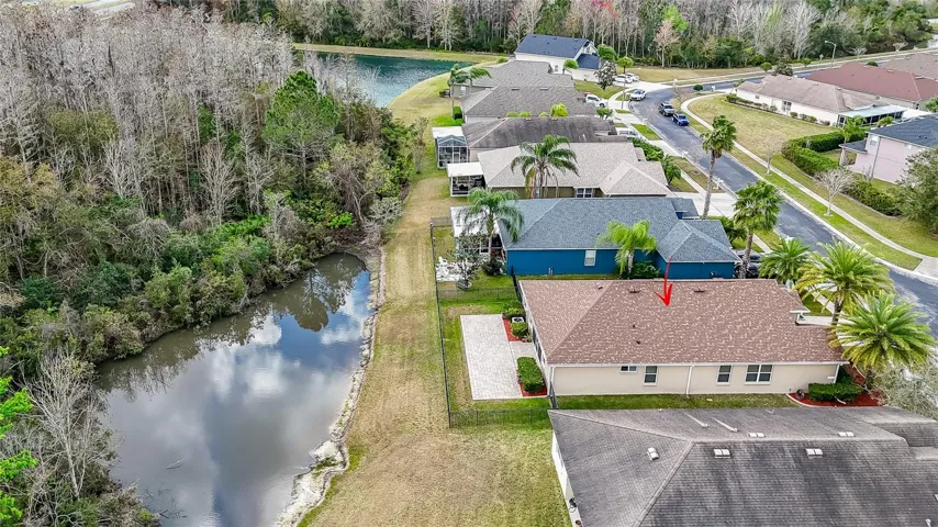A brand-new ROOF (2025) sets the stage for this exceptional home located on a quiet cul-de-sac within the gated community of Meadow Pointe III, where homes with this level of privacy and view are rarely available. From the moment you arrive, the great curb appeal and brick paver driveway make a strong first impression, but it’s the outstanding lot that truly sets this property apart. Backing to a serene pond and conservation area, the private picket-fenced yard, screened lanai, and extended brick paver patio create the perfect setting to relax, entertain, and enjoy peaceful nature views, daily wildlife sightings, and the quiet that comes with having no rear neighbors.