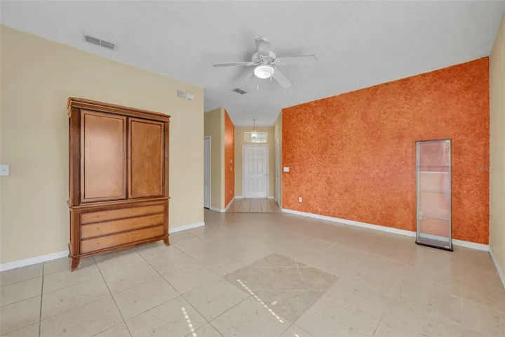 Set on the water in an established community, this 3-bedroom, 2-bath home offers a straightforward layout with water views at the back of the property. Inside, the living spaces are open and easy, with tile flooring throughout the main areas for low maintenance and everyday practicality. The kitchen features white cabinetry, stainless steel appliances, and a raised breakfast bar that connects naturally to the living and dining spaces. The primary bedroom includes a walk-in closet and a private en-suite bathroom. Two additional guest bedrooms are located nearby and share a guest bathroom, creating a simple and functional layout. Out back, the home overlooks the water, offering a quiet place to unwind at the end of the day. Community amenities include a waterfront picnic pavilion, playground, basketball court, and a community dock with space to launch non-motorized watercraft, adding outdoor options without added maintenance. Conveniently located just minutes from the 417, with Waterford Lakes Town Center and Boxi Park about 15 minutes away, shopping, dining, and entertainment are always within reach. This home is simple, comfortable, and centered around a view you don’t get tired of.