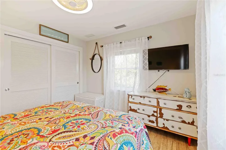 Set on the intracoastal waterway, this stunning home offers approximately 1,800 square feet of inviting living space with three beautifully appointed bedrooms and two baths. The dramatic loft-style primary suite features a queen bed, its own sitting area with a convertible single, and even a full bed set within an expansive walk-in closet. The additional bedrooms provide generous accommodations, including two full beds in one room and a queen in the other, ensuring comfort for family and guests alike.