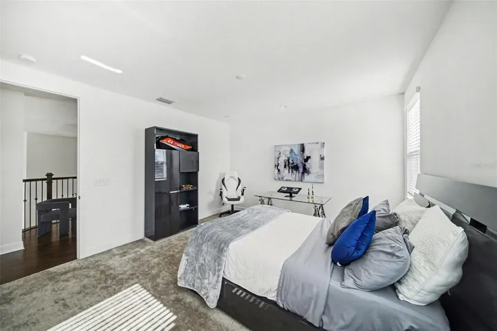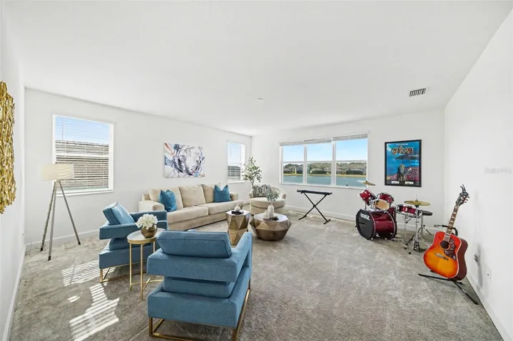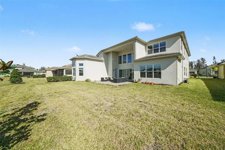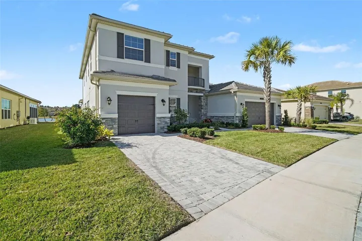 Welcome to luxury living in the highly desirable Winding Ridge community of Wesley Chapel. This stunning Modern/Contemporary Amethyst floor plan by GL Homes offers 4,501 square feet of beautifully designed, fully upgraded living space. The thoughtfully designed floor plan includes 4 bedrooms, 5 full bathrooms, 1 half bath, a private den/office, a huge bonus room/theater, and a 3-car garage. The first floor offers a guest bedroom with its own private bathroom, perfect for visitors or multi-generational living, along with a formal dining room, a wet bar, a powder room, a spacious great room, and a luxurious owner’s suite. Set on a premium pond-view lot, the home features an extended paved backyard, ideal for entertaining or unwinding while enjoying tranquil water views and vibrant sunsets. Inside, a bright, open layout is complemented by soaring ceilings and majestic stairs, creating an impressive first impression. The gourmet kitchen is a chef’s dream, featuring quartz countertops, stainless steel appliances, a gas range, 42” wood cabinetry, and an oversized center island, ideal for both everyday living and entertaining. The owner’s suite serves as a private retreat, featuring his-and-hers walk-in closets and a spa-like bath with a soaking tub, walk-in shower, and a double quartz vanity. Upstairs, you’ll find two additional bedrooms, two full bathrooms, and a massive bonus room/playroom, offering endless flexibility for a home theater, game room, or additional living space. Enjoy resort-style amenities, including pools, fitness facilities, tennis, and pickleball courts. Enjoy resort-style amenities, including pools, fitness facilities, tennis, and pickleball courts. The home also includes a Culligan Water Softener System. When you live at Winding Ridge in Wesley Chapel, you’ll enjoy a one-of-a-kind lifestyle with top-tier resort-style amenities, acres of pristine preserves, lakes, and a stunning multimillion-dollar entry to welcome you home every day. Residents can access a magnificent clubhouse and a 5-acre recreation area featuring resort-style pools, fitness facilities, and TENNIS AND PICKLEBALL courts. HOA fees include lawn mowing, landscape maintenance, fertilization, mulching, and exterior pest control. Located conveniently on SR-56, Winding Ridge offers easy access to Wiregrass Mall, Tampa Premium Outlets, USF, Moffitt Cancer Hospital, Advent Health Hospitals, Pasco State College, Center Ice, I-75, and I-275. Just a short drive from downtown Tampa and Tampa International Airport, this location offers an ideal balance of accessibility for professional and recreational pursuits. Don’t miss this opportunity. Schedule your showing today and experience the luxurious lifestyle that awaits you!