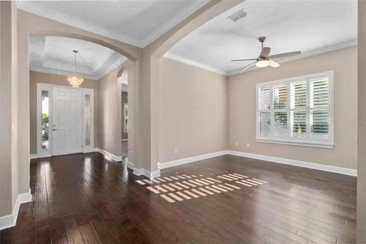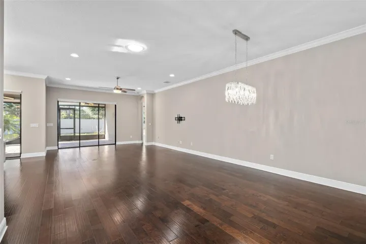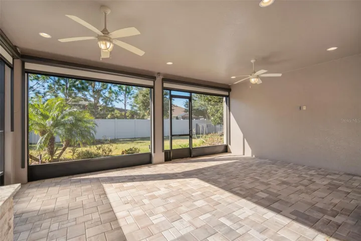 WELCOME to this REMARKABLE LAZIO model located in the GATED 55+ Community of the Esplanade at Highland Ranch in Clermont. Upon entry you will be greeted by an ABSOLUTELY GORGEOUS, OPEN SEE THROUGH floor plan. This 3 bedroom, 3 bath, 2,328 sq ft ONE STORY offers GENEROUS room sizes and Over $100,000 in DESIGN CENTER UPGRADES, all situated on a GREAT LOT in a Community with Resort Style AMENITIES. The GOURMET KITCHEN OPTION was selected and features UPGRADED Stainless Steel Appliances, POT FILLER, Quartz Countertops, Glass Tile Back Splash, Pendant Lighting over a BEAUTIFUL ISLAND with BREAKFAST BAR and Front Facing Cabinetry for Additional Storage. You will also appreciate the 42″ Solid Wood Upgraded Cabinetry offering UNDER CABINET LIGHTING and LARGE CORNER PANTRY. You are sure to be impressed with the GENEROUS size of the Primary Suite offering an UPGRADED BAY WINDOW and Primary En-Suite with a large WALK-IN SHOWER, RAIN SHOWER, HAND HELD SPRAYER, comfort height DOUBLE SINK Vanity, Water Closet and an OVERSIZED WALK-IN CLOSET with a Great Closet Organization System. Bedroom 2 offers it’s very own En-Suite for the Convenience of your Guests. Bedroom 3 is adjacent to Bathroom 3. There is also an additional Flex Space that can accommodate a Office/Den/Study or a separate sitting room. The LAUNDRY room has a sink and Cabinetry for your storage needs. Some of the offered Upgrades are ENGINEERED HARDWOOD FLOORING in the Main Living areas and Primary Suite, Floor Electrical Receptacle in Family Room, Upgraded Wall and Floor Tile, 8 Foot Interior Doors, Crown Molding, Oversized Trim, Upgraded Cabinetry throughout, Upgraded “D” Elevation. A Large TANDEM GARAGE for 3 Cars offers plenty of space. The Block Walls in the Living Area offer Injection Masonry Foam for additional Insulation and there is R-38 Ceiling Insulation too. Adding to the Energy Savings, there is a TANKLESS HOT WATER HEATER for an Endless Supply of Hot Water. The Seller had Solar Tubes installed in the Family and Laundry Rooms to add Natural Light. Additional Ceiling Lighting, Ceiling Fans, PLANTATION SHUTTERS and an EXTENDED UNDER ROOF Screened LANAI with an OUTDOOR KITCHEN. The Lanai also has Newer Upgraded Pavers and Power Roll Down Shades. The EXTERIOR was PAINTED IN APRIL 2025. The Seller added the house to fence sections on both sides creating a fenced in yard. RESORT STYLE Community Amenities include Clubhouse, Pool, Spa, Resistance Pool, Clay Tennis and Bocce’ Courts, 4 Pickle Ball Courts (All Sports Courts are lighted for nighttime play), Fire Pit, Movement Studio, Activities, Clubs, Billiards & more. Don’t forget the DOG PARK for your furry family members too! Close to the New Advent Health Hospital, SOUTH LAKE HOSPITAL, VA, Medical Offices, NTC (National Training Center), SHOPPING & DINING. Miles of Biking/Walking Trails for your Outdoor Endeavors and a 15 minute drive to either Downtown Clermont or Winter Garden for more enjoyment and Farmers Market’s. For your traveling convenience, The Esplanade at Highland Ranch is a few minutes to the Florida Turnpike where OIA and Attractions are about 35 minutes away, as well as Dr Phillips Famed Restaurant Row. HOA includes Lawn/Shrub Care, Fertilizing, Irrigation maintenance as well as the Amenities. THIS HOME IS A MUST SEE! The Esplanade at Highland Ranch does NOT have a CDD.