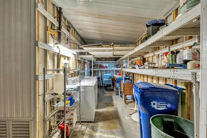 Welcome to Tidevue Estates, a land-owned, active 55+ community! This rarely available one-car garage home with workshop and extra storage sits on a concrete slab. Truly move-in ready and turn-key furnished, this home has been thoughtfully updated throughout. Enjoy peace of mind with a brand-new roof (2024), all new windows, A/C replaced in 2022, and water heater updated in 2016. The updated kitchen features all-new cabinets, a refrigerator and stove (2019), plus two refrigerators with ice makers. The bright and spacious living room is perfect for entertaining. Laminate flooring flows throughout the home, and the primary bathroom has been updated with a walk-in shower. The second bedroom has its own private entrance so when guests come to visit they can just go right out for their monrning run/walk. Relax on the epoxy-coated front porch (2020) and watch the world go by. Enjoy the Florida sunshine on the open patio perfect for grilling out. Newer washer and dryer included. Conveniently located within walking distance to the recreational center and pool—Florida living at its best! Low HOA of only $600 annually. Pets are not permitted. Plenty of activities to keep you busy in this community. Take a water aerobics class in the solar-heated community pool or work on your tan. The community library has free WI-FI connection. Updated fitness center. Meet friends and make new ones for a game of indoor pickleball, bocce ball, or shuffleboard. Join the Golf League. Take a bike or golf cart ride to Veteran’s Park to watch the wildlife and sunset. Ellenton Premium Outlet Mall, restaurants, and medical facilities are just minutes away. Easy access to I-75. Not to mention a short drive to our beautiful Gulf Beaches.