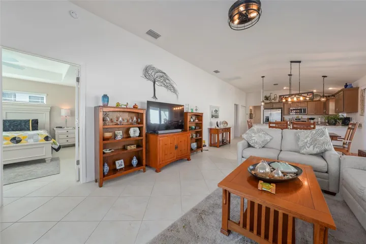 The bright and welcoming living area is filled with natural light and opens directly to the screened lanai, complete with Gorgeous teakwood flooring. This private outdoor space is ideal for entertaining guests or relaxing with your favorite beverage. The gated backyard is private, and perfect for an outdoor retreat with room for a pool, fire pit with seating or your dream entertainment retreat. The master bedroom is tranquil, highlighted by tray ceilings and 2 large custom walk-in closets. The updated en-suite bath offers ample counter space, cabinetry, dual sinks, and a gorgeous Roman-style walk-in shower with seating. Guests will feel at home in the 2 additional bedrooms, one of which features a pocket door for added privacy, and an adjacent full bath with a large linen closet. Conveniently located off the kitchen, is a custom indoor laundry room with high-end washer & dryer, additional cabinetry for storage, and a utility sink. The spacious Insulated 2 car garage is extra wide at 24’ and includes utility closets perfect for storage, epoxy flooring, NOVA filtration system, and a portable air conditioner. This premiere location is just a 5-minute golf cart ride to Sawgrass and only 15 minutes to Eastport. Also, there are dog parks, golf courses, pools, trails and so much more. So much to discover, celebrate and enjoy! This home is truly an entertainer’s dream, offering luxury, comfort, and a picturesque setting. Don’t miss out on this fabulous opportunity! Come see it in person and appreciate this ABSOLUTE GEM!