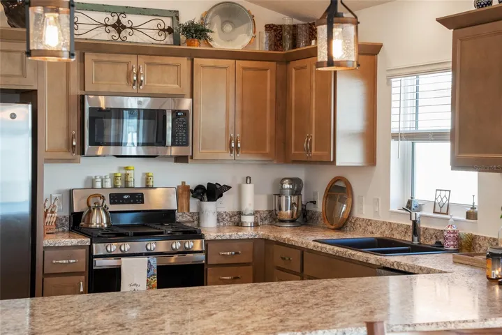 The open-concept living, dining, and kitchen areas with high ceilings flow seamlessly and are enhanced by stunning diagonal ceramic tile flooring throughout (no carpet). The chef’s kitchen is standout, featuring an abundance of beautiful cabinetry with soft close drawers, stainless steel gas appliances, a large closet pantry and a generously sized breakfast bar- perfect for casual dining or entertaining.