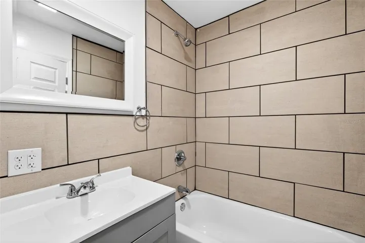 One or more photo(s) has been virtually staged. Totally renovated home with private fenced yard with no hoa!! Open floor plan with beautiful tile floors in main living area. Kitchen is spacious and has new cabinets, countertops and stainless steel range hood. Primary bedroom has carpet and built in closet leading to brand new bath with walk in tile surround and glass rain shower with tile walls and new commode and vanity. stepping to back of home to 2 additional bedrooms that share the new 2nd bath with tile surround combo tub/shower, new modern gray vanity and commode. The enclosed florida room is under air and is the home to the laundry closet. Step outside to large deck overlooking the backyard. 3 different rooms are for storage or could be converted to passive income housing or in law suite. All close to downtown of Ocala!!