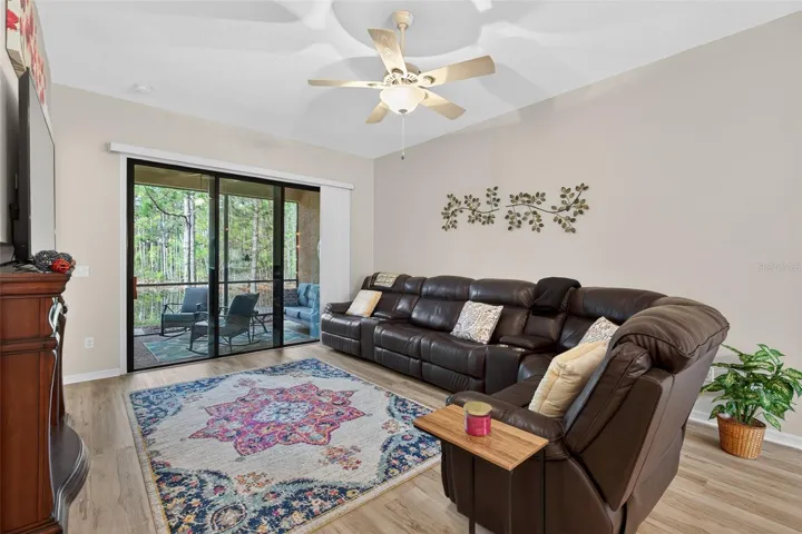 Beautiful 3 bedroom, 2 bathroom townhome located at the end of a quiet cul-de-sac gives complete privacy. The property has been well maintained and only used part-time. This property features all new flooring on the main floor. The dining room, living room and kitchen has vinyl floors while the bedrooms have carpet. The kitchen is upgraded with granite counter tops, island seating, stainless steel appliances and pantry storage The spacious primary bedroom is located on the main floor with a lake view. The en-suite bath has dual sinks, private commode and walk in shower. You can end your day relaxing on the screened in and private lanai enjoying the view of the lake and preserve and watch the wildlife. Included in the association fee is roof replacement, exterior maintenance and exterior painting. Plantation Bay Golf & Country Club offers 45 holes of golf, tennis and pickleball and fitness and spa facilities, a community pool and cabana, dining and social events. Contact listing agent for viewing.