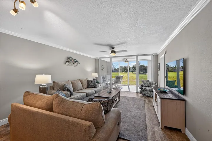 The glass-enclosed, air-conditioned lanai creates additional year-round living space with tranquil