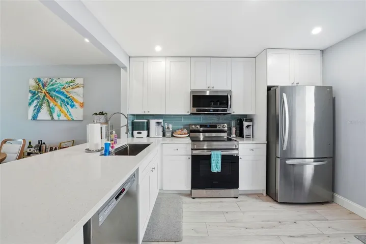 ALL AGES & ANIMAL FRIENDLY! This amazing, one of a kind, completely updated 4 BEDROOM, 3 FULL BATHROOM 1 CARPORT TOWNHOME in the highly sought-after CASA DEL MAR community. Located directly on the ISLA DEL SOL GOLF COURSE with sweeping fairway and tranquil pond views. Offering 1,650 SQ FT of light-filled living space, this home delivers the perfect blend of timeless design, comfort, and location. The main level features completely updated kitchen opened up into the spacious dining room and living room with a cozy WOOD-BURNING FIREPLACE and HURRICANE-IMPACT SLIDING GLASS DOORS opening to a large patio over looking the golf course and ideal for entertaining or unwinding with a view. ONE bedroom and bathroom downstairs perfect for guests to come stay over looking the golf course and complete with its own private patio access. Convenient LAUNDRY closet on the first floor. Upstairs, the PRIMARY SUITE is a true retreat with an OVERSIZED WALK-IN CLOSET, ENSUITE BATH, and a NEW PRIVATE BALCONY overlooking the golf course. Two additional bedrooms and a full bath complete the upper level. Townhouse Features: HURRICANE-IMPACT WINDOWS & SLIDERS through with REMOTE STORM SHUTTERS. RESORT-STYLE AMENITIES: A heated waterfront pool and hot tub with breathtaking views of BOCA CIEGA BAY. (The HOA fee includes water, sewer, trash, cable, internet, recreational facilities, pool, flood insurance, maintenance of building and grounds.) Located 1 mile from ST PETE BEACH, 1/2 mile from the Isla Del Sol Yacht & Country Club and a short drive to Fort De Soto Park. THIS WILL NOT LAST LONG, REQUEST YOUR SHOWING TODAY! (HVAC 2022, W/H 2025)
