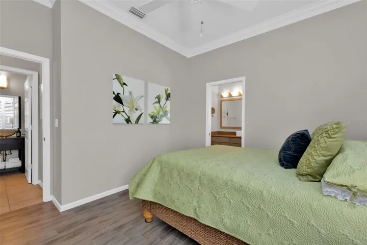 Located in the Royal Oaks subdivision of Riverwood, this beautifully updated 2-bed, 2 ½ bath home with a den or study offers peace of mind with major updates already completed, including a new roof in 2024, hot water heater in 2023, HVAC in 2021, and fresh exterior paint in 2025. Clean lines, tray ceilings, crown molding, and plantation shutters throughout create an open, polished feel. French doors lead to a flexible den or study that allows for a variety of uses. A split floor plan provides privacy for the guest suite with an ensuite bath, along with a nearby laundry room with additional storage and a new washer and dryer. Sliding doors from the main living space lead to the paver lanai, while the kitchen and custom-built-in workspace remain open to the living room for a cohesive flow. Soft taupe quartz countertops, a stainless-steel tile backsplash, solid-wood soft-close cabinetry with oversized storage, a breakfast bar, and an adjacent breakfast nook define the kitchen, while the striking built-in workspace features rich solid-wood cabinetry, generous quartz countertop space, and a beverage refrigerator. The primary suite provides a calm retreat with a spacious walk-in closet and an ensuite bath featuring dual sinks, a walk-in shower, a spa tub, a private water closet, and extensive cabinet space. The spacious lanai includes a covered area and ample room to lounge poolside, surrounded by mature landscaping that creates a private, peaceful backdrop. The refurbished heated pool features a gentle water feature, LED lighting, and a new variable-speed pool pump. Additional features include a central vacuum, Storm Smart shutters installed in 2020 with powered roll-down protection on the lanai and front door, a 2-car garage with racking and cabinetry and new gutters and downspouts. Riverwood offers an active, social lifestyle with miles of walking paths, a 24-hour fitness center, a resort-style pool with lap lanes, and a welcoming activity center. Residents enjoy tennis, pickleball, bocce, croquet, a dog park, and a full calendar of clubs, events, and entertainment. The semi-private Riverwood Golf Club is consistently rated among the top courses in the U.S. and Florida, with social memberships and pay-to-play options available. Ideally located between Sarasota and Fort Myers, residents also enjoy easy access to major highways, shopping, dining, world-class fishing, boating, waterfront dining, and the beautiful sandy beaches of the Gulf. With the beautiful furnishings negotiable outside of the contract and the important updates already completed, you can move right in and start enjoying the relaxed Florida lifestyle you’ve been dreaming of!
