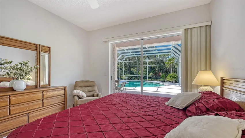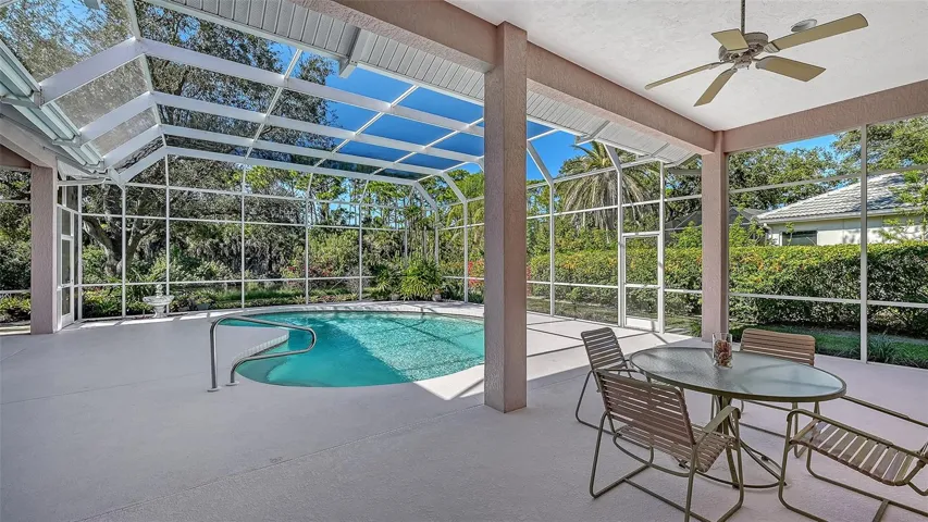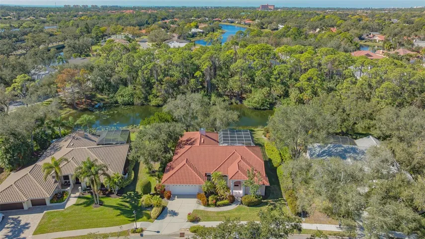 Don’t miss this beautifully crafted custom home by Ammon Schrock, located in the desirable gated community of Deer Creek in Palmer Ranch. Tucked away on a quiet cul-de-sac, this 4-bedroom, 3-bath pool home offers 2,628 sq. ft. of living space on an oversized waterfront lot with tranquil views and stunning treetop sunsets. The open floor plan is enhanced by an abundance of pocket sliding glass doors, filling the home with natural light and seamlessly blending indoor and outdoor living while showcasing the lush landscaping and water views. A split-bedroom layout provides privacy, while the kitchen and family room combination offers generous space for everyday living and entertaining. Additional features include a large two-car garage and a wood-burning fireplace in the family room. This home has been meticulously maintained with numerous updates, including a new tile roof and A/C unit (2018), storm-rated garage door (2021), water heater (2022), exterior and pool deck repainting (2023), new pool pump (2025), and a fully rescreened pool cage (2025).