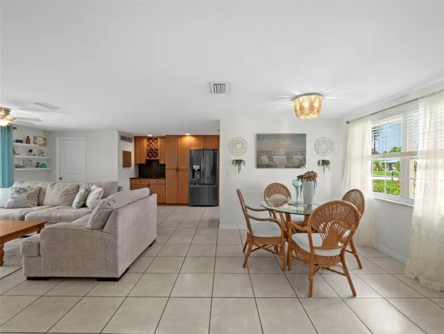 Waterfront living at its best! This elevated Florida style home offers direct canal access with a private dock and seawall, just 20 minutes to the open Gulf and only 2 miles from Englewood Beach and downtown Dearborn Street. Enjoy true indoor outdoor living with an oversized screened and heated saltwater pool, covered lanai, and expansive paver pool deck, perfect for relaxing or entertaining year round. Inside, the home features 2 bedrooms and 2 bathrooms with neutral porcelain tile throughout, a spacious kitchen with solid wood cabinetry, granite countertops extending to the backsplash, stainless steel appliances, and a built in dry bar ideal for hosting. Additional highlights include impact windows and doors, an air conditioned garage with indoor laundry and built in storage, outdoor shower, kayak launch, and a 10×18 backyard shed with electric, water, and air conditioning perfect for a studio, gym, or extra storage. Ideally located near waterfront dining, boutique shopping, coffee spots, yoga studios, parks, and local events, this home offers a relaxed coastal lifestyle with everyday convenience.