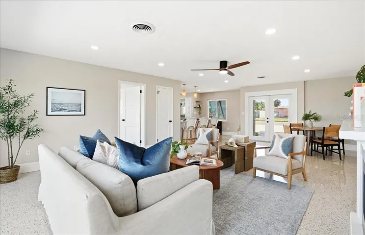 on beautiful Treasure Island! This is a three-bedroom, two-bath, two-car garage beach house. It blends relaxed Florida living with modern comfort, offering a bright, open layout just steps from the shimmering Intracoastal Waterway and a short walk to world famous sandy beaches.