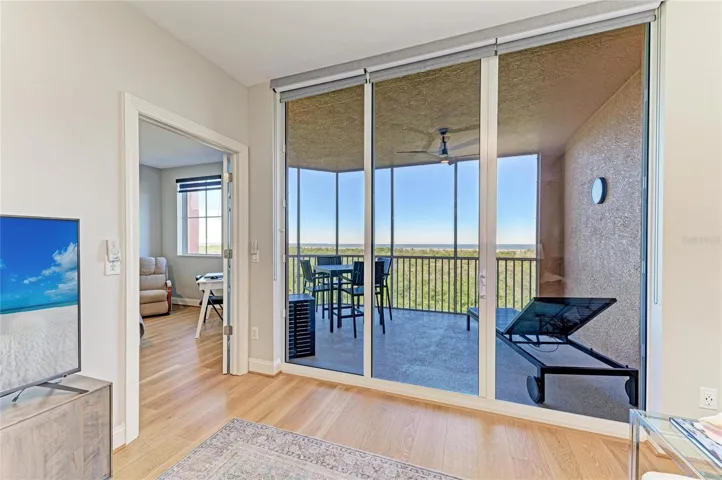 Just beyond the sliders, the screened lanai becomes an everyday retreat — a place for slow mornings with coffee, afternoons watching boats glide through the channel, and evenings painted in sunset color. With front-row harbor views and gentle coastal breezes, this is where indoor comfort gives way to the rhythm of waterfront living.