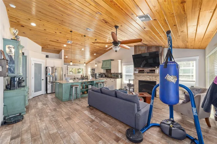 Charming 4 acre farm with a beautifully designed 2-bedroom, 2-bath residence welcomes you with a stunning great room featuring a 6” knotty pine tongue-and-groove ceiling, elegant built-ins, tile flooring, and a cozy gas fireplace. This home has a new pool. The custom kitchen is both stylish and practical, showcasing custom cabinetry, a spacious granite island, granite countertops, and a pantry with pull-out drawers—ideal for everyday living and entertaining. Exterior highlights include cypress siding, a metal roof, and modern systems such as a water softener and chlorine well system.