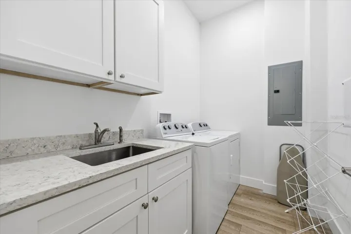 Welcome to a life of coastal elegance, where the spirit of the British West Indies meets the sun-drenched shores of Treasure Island. This exceptional three-bedroom, three-bath townhome represents the pinnacle of CAT 5 block construction, offering both timeless resilience and effortless luxury. Designed for those who seek a seamless blend of daily comfort and refined sophistication, every detail has been curated to fulfill your vision of the perfect waterfront retreat.